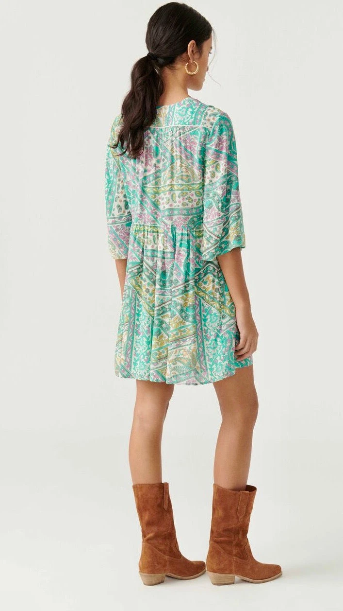 Robe imprimée Ultra glamour et féminine, la robe FLEUR ba&sh est une pièce phare à avoir dans votre vestiaire d’été. La coupe loose de cette robe convient à toutes les femmes. Les manches larges et évasées apportent une touche tendance à votre tenue. Le détail du lien en croisillon à l’encolure apporte une touche significative à votre robe. Confectionnée en viscose, elle est fluide légère et ultra agréable à porter ! Description Manches larges et évasées Encolure V Plis à la taille Longueur mini Fluide Conseil et taille Le produit taille normalement, nous vous recommandons de prendre votre taille habituelle. Taille du produit 0 1 2 3 Equivalence française 36 38 40 42 Composition et entretien 100% Viscose Lavage 30° Essorage 600 La viscose La viscose est une matière conçue à partir de cellulose naturelle. Un filage humide permet sa production. Une viscose peut être mat ou brillante en fonction de la volonté et des procédés du créateur. Son apparence peut être trompeuse, et vous donner l’impression de porter de la laine, de la soie ou du coton. La viscose est une matière légère, douce et cache l’odeur de transpiration. La viscose se lave facilement à 30 degrés avec un faible essorage à 600 tours et un léger repassage. Voir toute la sélection de ce fournisseur https://windownext.com/collections/bash La marque L’aventure ba&sh commence en 2003, lorsque deux amies Barbara et Sharon décident d’investir en autodidactes l’univers de la mode. Les vêtements ba&sh ont un style chic et sobre à la fois. Les blouses, tops et robes aux beaux imprimés exclusifs font le succès de la marque. Présent dans plus de 400 magasins dans le monde, ba&sh est une fierté parisienne réunissant liberté, aisance, élégance et modernité. Lutter contre le changement climatique tout en progressant sur le bien-être des équipes, partenaires et de la planète est un de leur objectif principal. L’engagement signé ba&sh : Un lifting eco-chic. Les deux amies choisissent donc des matières respectueuses, repensent chaque fois leur business model et sont complétement transparentes sur leur chaîne de travail. 014983 ROBE BA&SH FLEUR