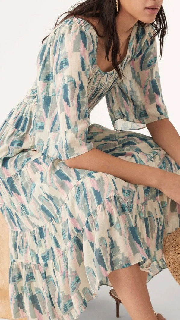 Robe longue imprimée Adoptez un look bohème chic avec la robe TEOLI ba&sh. L’encolure carrée est tendance, féminine et ultra branchée ! L’imprimé graphique se porte facilement tout au long de la saison; au printemps avec des bottes pointues ou en été avec des mules… Description Encolure carrée Manches 3/4 Coupe évasée Détails volantés Conseil et taille Le produit taille normalement, nous vous recommandons de prendre votre taille habituelle. Taille du produit 1 2 3 Equivalence française 36-38 38-40 40-42 Composition et entretien 57% Coton 43% Modal Lavage à froid Essorage 600 Le coton Agréable et doux, le coton est la matière détenant le plus de propriétés confortables. Sa facilité d’absorption est remarquable et impressionnante. Sa texture mélangée à son tissu robuste et stable vous donne une sensation de fraîcheur même pendant les jours les plus chauds de l’été. Facile à entretenir, le coton se lave facilement. Voir toute la sélection de ce fournisseur https://windownext.com/collections/bash La marque L’aventure ba&sh commence en 2003, lorsque deux amies Barbara et Sharon décident d’investir en autodidactes l’univers de la mode. Les vêtements ba&sh ont un style chic et sobre à la fois. Les blouses, tops et robes aux beaux imprimés exclusifs font le succès de la marque. Présent dans plus de 400 magasins dans le monde, ba&sh est une fierté parisienne réunissant liberté, aisance, élégance et modernité. Lutter contre le changement climatique tout en progressant sur le bien-être des équipes, partenaires et de la planète est un de leur objectif principal. L’engagement signé ba&sh : Un lifting eco-chic. Les deux amies choisissent donc des matières respectueuses, repensent chaque fois leur business model et sont complétement transparentes sur leur chaîne de travail. Livraison Livraison offerte en France métropolitaine par Colissimo ou en Point Retrait. Vous trouverez les frais de port Europe et monde lors de la validation de votre adresse Retour facile et gratuit Window Next facilite vos retours : vous pouvez nous retourner votre article dans un délai de 20 jours maximum suivant la réception de votre commande. Vous trouverez tous les documents prêts et imprimés (bon de retour et bon de transport prépayé colissimo) dans une enveloppe dans votre colis. Vous aurez juste à remplir la fiche retour et déposer votre retour dans une poste sans attente.Vous pouvez également déposer vos retours dans une de nos boutiques implantées dans les Hauts de France. Window Next 35,37 place de la république 59170 Croix. Desloover 14 rue du maréchal Leclerc 59190 à Hazebrouck Twin set 14 place Victor Hugo 62500 à Saint Omer Remboursement Vous recevrez le remboursement entre 5 et 10 jours suivants la réception de votre retour sur le compte utilisé lors du paiement. Paiement sécurisé Paiement en 3x sans frais Cartes bancaires et PayPal 014993 ROBE BA&SH TEOLI