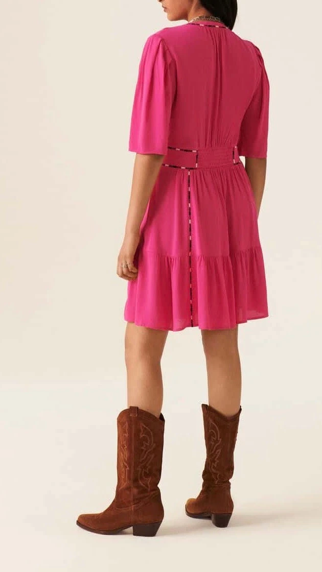 Robe courte cintrée et brodée On aime l’élégante robe TERESA ba&sh. Sa coupe cintrée met en valeur votre silhouette et les fines broderies apportent une touche très féminine. La robe idéale pour cette saison printemps-été. Description Encolure V Manches courtes Brodée Conseil et taille Le produit taille normalement, nous vous recommandons de prendre votre taille habituelle. Taille du produit 0 1 2 3 Equivalence française 36 38 40 42 Composition et entretien 100% Viscose Lavage 30° Essorage 600 La viscose La viscose est une matière conçue à partir de cellulose naturelle. Un filage humide permet sa production. Une viscose peut être mat ou brillante en fonction de la volonté et des procédés du créateur. Son apparence peut être trompeuse, et vous donner l’impression de porter de la laine, de la soie ou du coton. La viscose est une matière légère, douce et cache l’odeur de transpiration. La viscose se lave facilement à 30 degrés avec un faible essorage à 600 tours et un léger repassage. Voir toute la sélection de ce fournisseur https://windownext.com/collections/bash La marque L’aventure ba&sh commence en 2003, lorsque deux amies Barbara et Sharon décident d’investir en autodidactes l’univers de la mode. Les vêtements ba&sh ont un style chic et sobre à la fois. Les blouses, tops et robes aux beaux imprimés exclusifs font le succès de la marque. Présent dans plus de 400 magasins dans le monde, ba&sh est une fierté parisienne réunissant liberté, aisance, élégance et modernité. Lutter contre le changement climatique tout en progressant sur le bien-être des équipes, partenaires et de la planète est un de leur objectif principal. L’engagement signé ba&sh : Un lifting eco-chic. Les deux amies choisissent donc des matières respectueuses, repensent chaque fois leur business model et sont complétement transparentes sur leur chaîne de travail. 014264 ROBE BA&SH TERESA