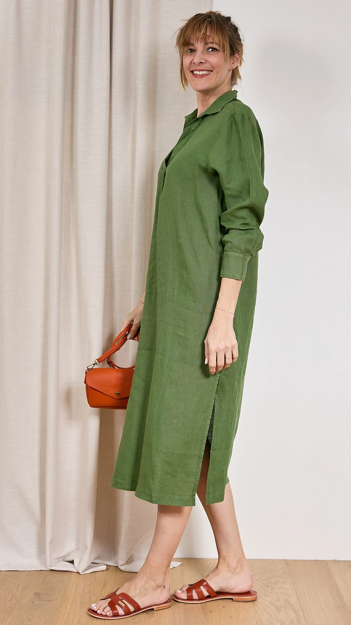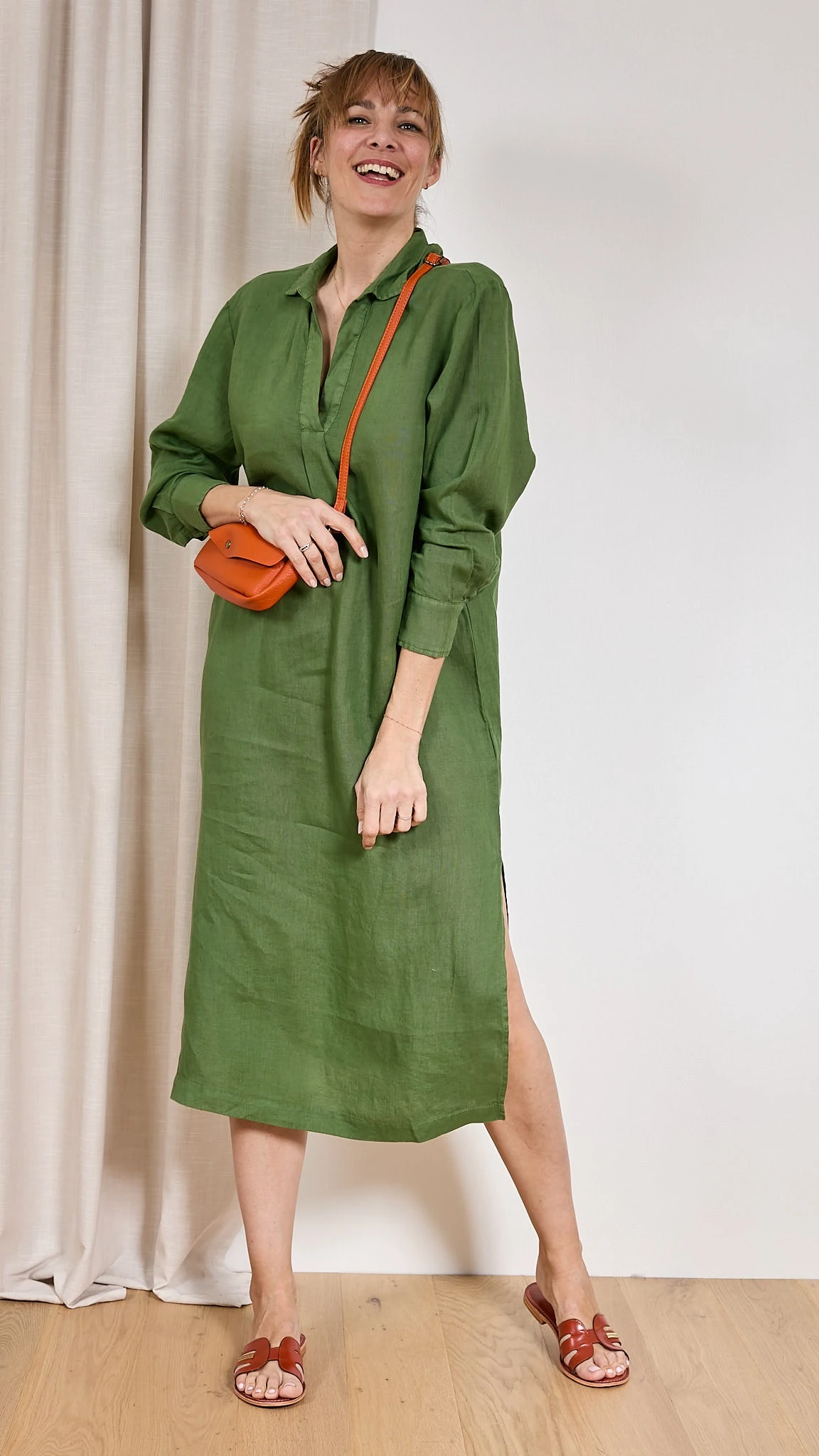 Robe longue en lin On aime la robe ELINDA Harris Wilson. Cette robe longue en lin est facile à porter, et apporte une touche sophistiquée à votre tenue. Les fentes en bas de vêtement féminisent cette pièce. Confectionnée en lin, elle est légère souple et très agréable à porter. Description Col chemisier Decolleté en V avec pli Fronce sur l’encolure dos Longue Volume large Fentes latérales Conseil et taille Julie mesure 1.78m et porte la taille 36 avec les mules DAMIA Les Tropeziennes. Le produit taille grand, nous vous conseillons de prendre une taille en-dessous de votre taille habituelle. Composition et entretien 100% Lin Lavage 30° délicat Essorage 600 Le lin La matière de l’été est souvent le lin. Ses fibres sont ultra absorbantes et vous donne une sensation de fraicheur lors des fortes chaleurs. Il est léger, doux et naturellement confortable sur votre peau. Le lin est sûrement une des matières les plus résistantes aux tâches. N’appréhendez pas de porter du lin par peur qu’il se froisse, il se froisse avec élégance et discrétion. Voir toute la sélection de ce fournisseur https://windownext.com/collections/harris-wilson La marque À l’origine d’Harris Wilson, il y a la maille depuis plus de quarante ans et qui prend désormais la forme des collections complète pour l’homme et la femme. Un vestiaire qui laisse la vie suivre son cours, à l’image du canal Saint-Martin, près duquel elle est installée. 014507 ROBE HARRIS WILSON ELINDA