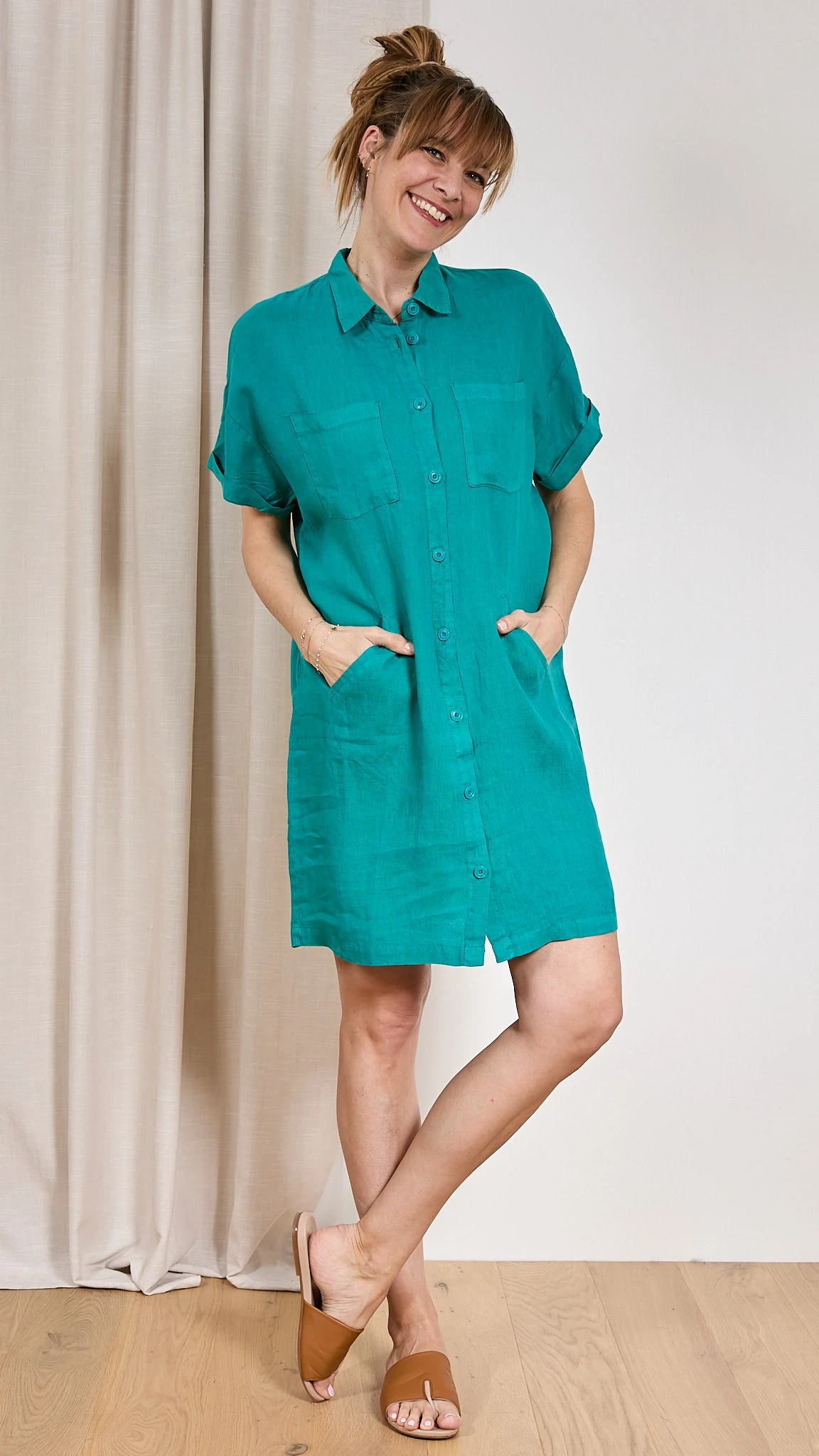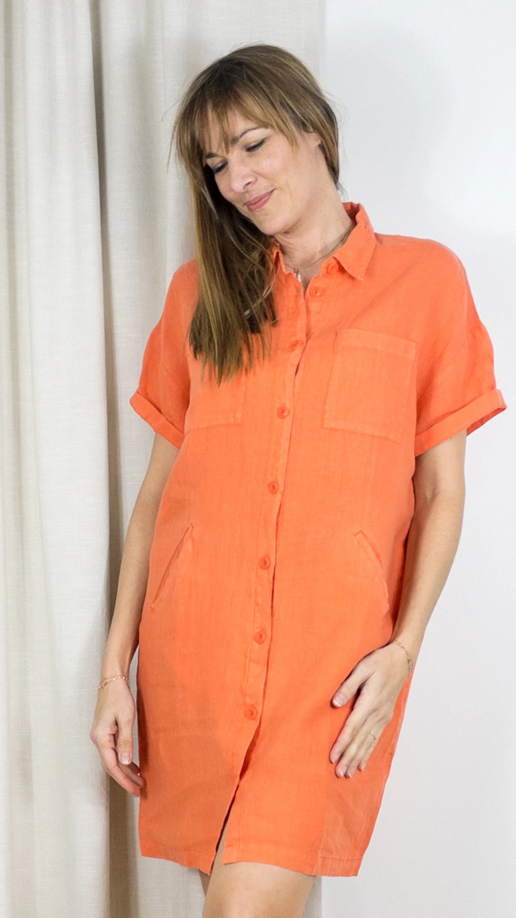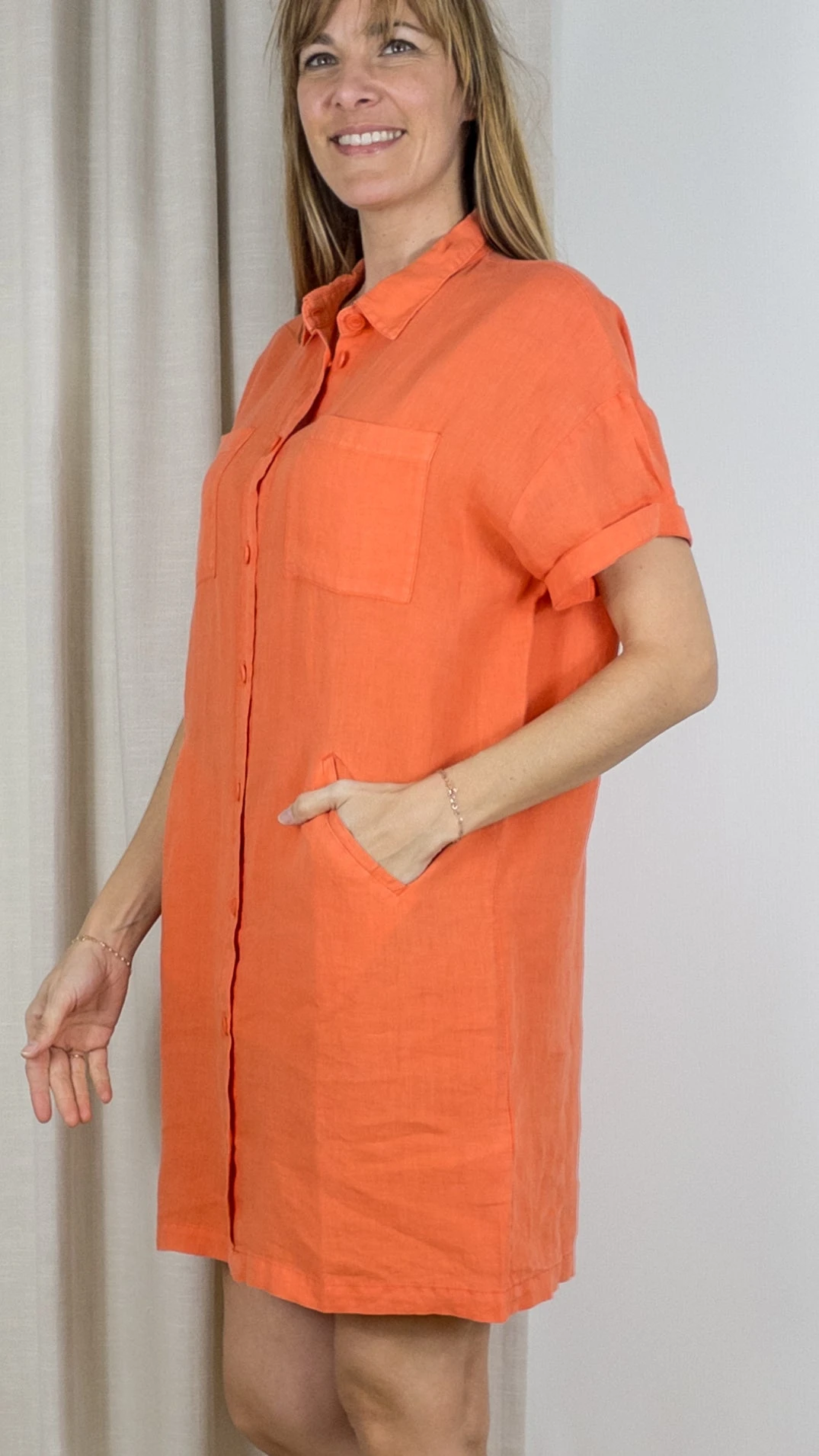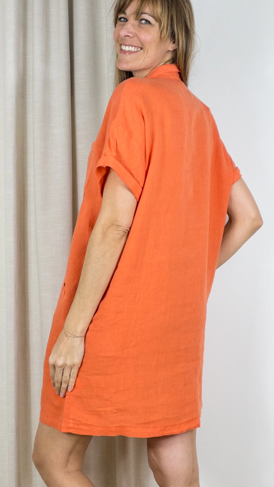 Robe chemise boutonnée On aime la robe ELINE Harris Wilson. Cette robe chemise se porte sans modération tout l’été ! Sa coupe droite convient à toutes les femmes. Les poches poitrine apportent une touche sophistiquée à cette pièce. Confectionnée en lin, elle est légère et souple, idéale pour les jours chauds et ensoleillés de l’été ! Description Col chemise Manches courtes 2 poches poitrine 2 poches latérales Boutonnée de haut en bas Conseil et taille Julie mesure 1,78m et porte la taille 36 en corail avec les mules DAMIA Les Tropeziennes. Avec la robe turquoise, elle porte les mules ACHO Unisa. Le produit taille grand, nous vous conseillons de prendre une taille en-dessous de votre taille habituelle. Composition et entretien 100% Lin Lavage 30° délicat Essorage 600 Le lin La matière de l’été est souvent le lin. Ses fibres sont ultra absorbantes et vous donne une sensation de fraicheur lors des fortes chaleurs. Il est léger, doux et naturellement confortable sur votre peau. Le lin est sûrement une des matières les plus résistantes aux tâches. N’appréhendez pas de porter du lin par peur qu’il se froisse, il se froisse avec élégance et discrétion. Voir toute la sélection de ce fournisseur https://windownext.com/collections/harris-wilson La marque À l’origine d’Harris Wilson, il y a la maille depuis plus de quarante ans et qui prend désormais la forme des collections complète pour l’homme et la femme. Un vestiaire qui laisse la vie suivre son cours, à l’image du canal Saint-Martin, près duquel elle est installée. 014506 ROBE HARRIS WILSON ELINE