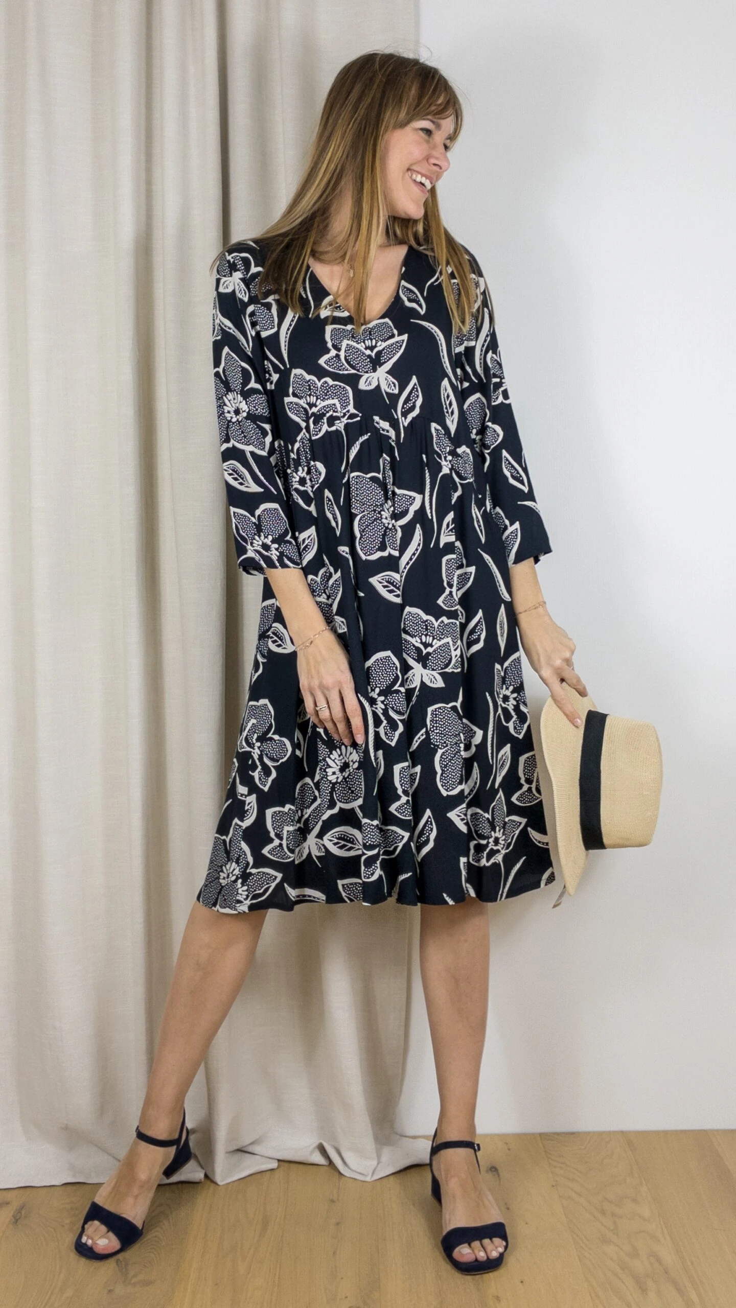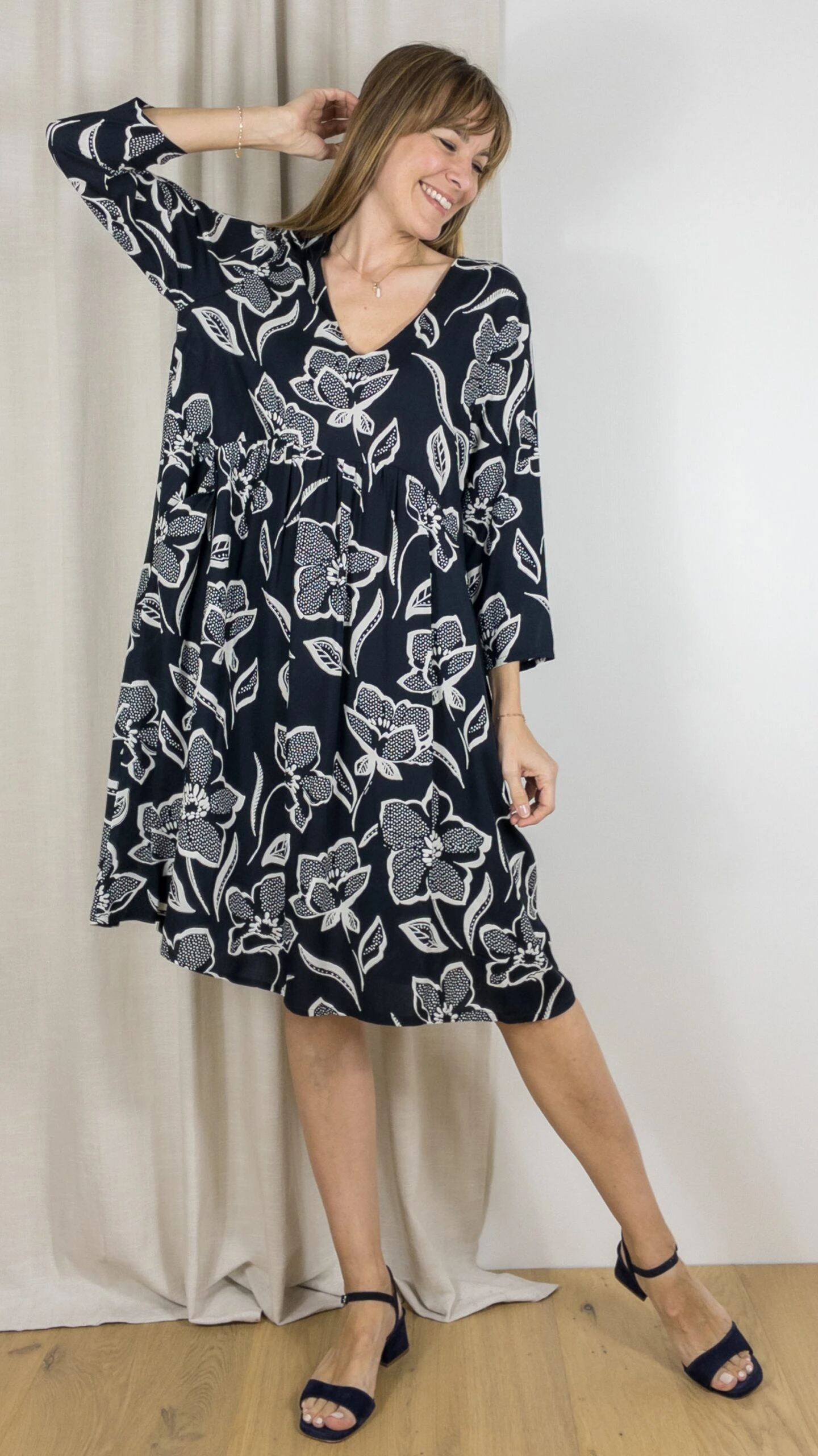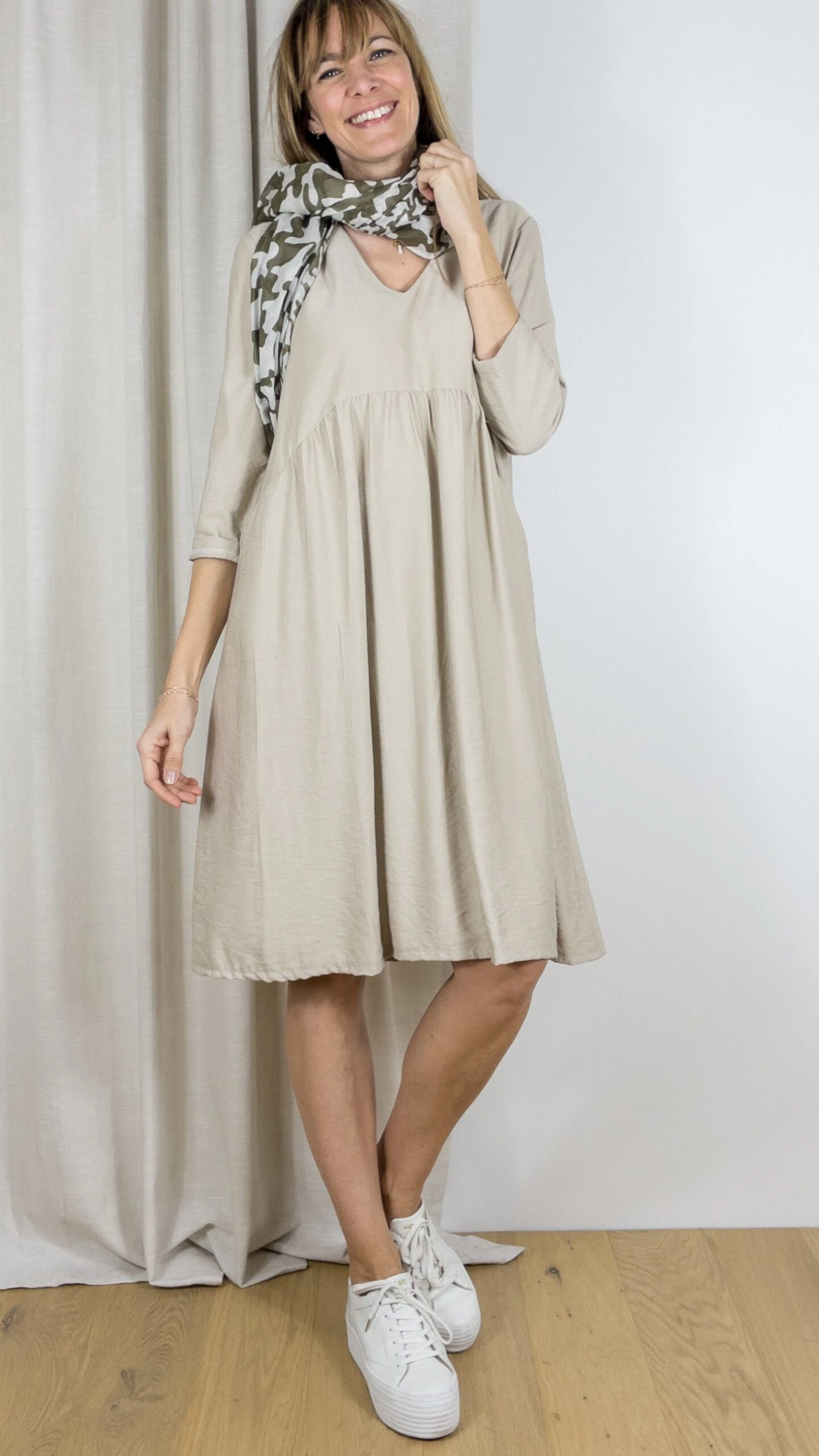 Robe évasée Laissez vous séduire par la robe CORIE Janis & John. Cette magnifique robe en lin évasée est le choix parfait pour toutes les femmes qui souhaitent allier élégance et confort. Fabriquée en lin, elle est légère et très agréable à porter. Une robe respirante et confortable ! Description Encolure V Coupe évasée Pli creux au dos Manches 3/4 Longueur genoux Conseils Julie mesure 1,78m. Le produit est proposé en taille unique, idéal du 36 au 46. Composition et entretien 100% Lin Lavage 30° Essorage 600 Le lin La matière de l’été est souvent le lin. Ses fibres sont ultra absorbantes et vous donne une sensation de fraicheur lors des fortes chaleurs. Il est léger, doux et naturellement confortable sur votre peau. Le lin est sûrement une des matières les plus résistantes aux tâches. N’appréhendez pas de porter du lin par peur qu’il se froisse, il se froisse avec élégance et discrétion. Voir toute la sélection de ce fournisseur Janis & John – WINDOWNEXT Histoire de la marque ou on écrit le nom de la marque Janis & John est une marque parisienne de prêt à porter au style urbain. A la fois confortable et chic, cette marque vous propose des pièces de qualité à prix intéressants. 014906 ROBE JANIS & JOHN CORIE