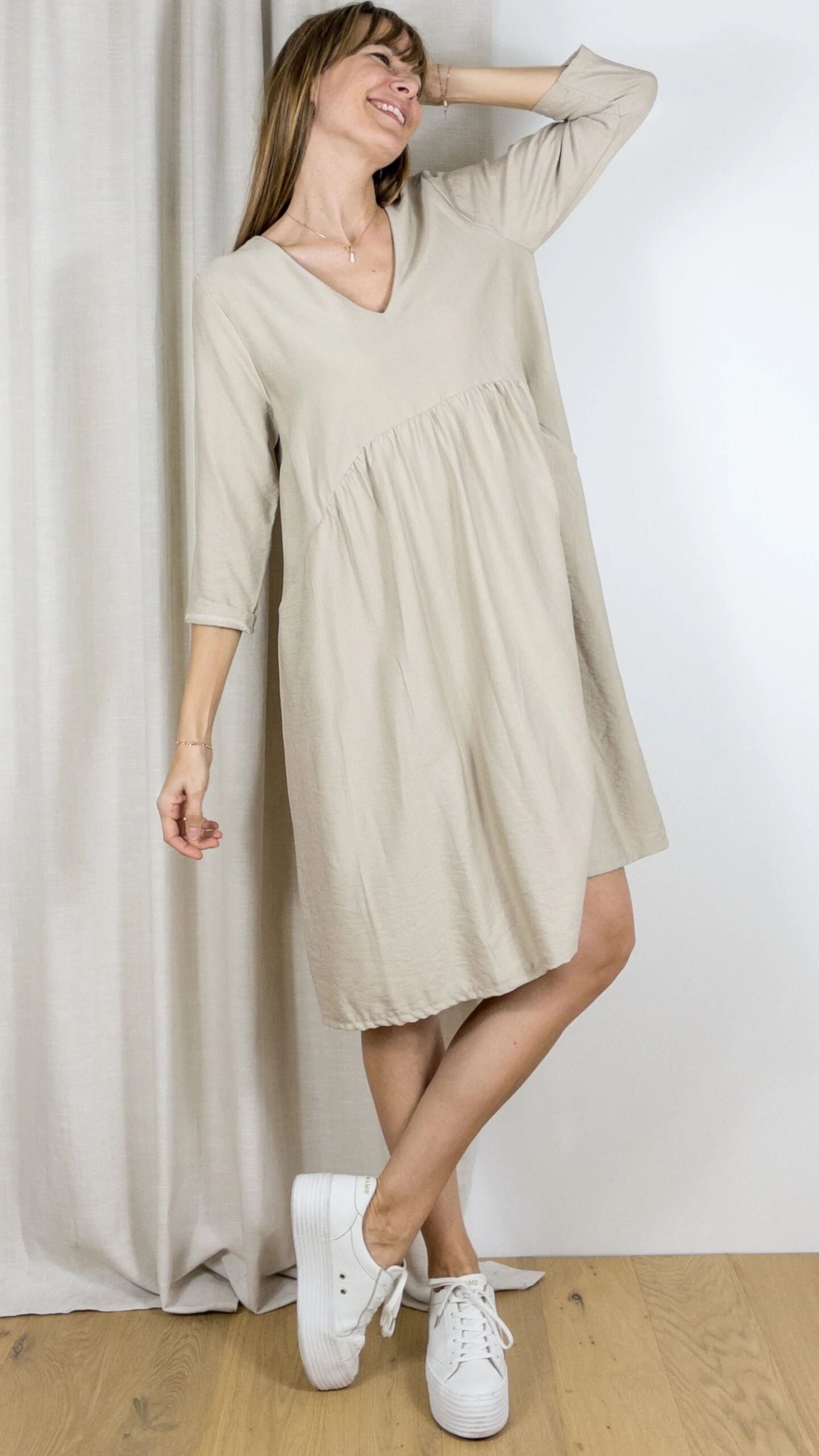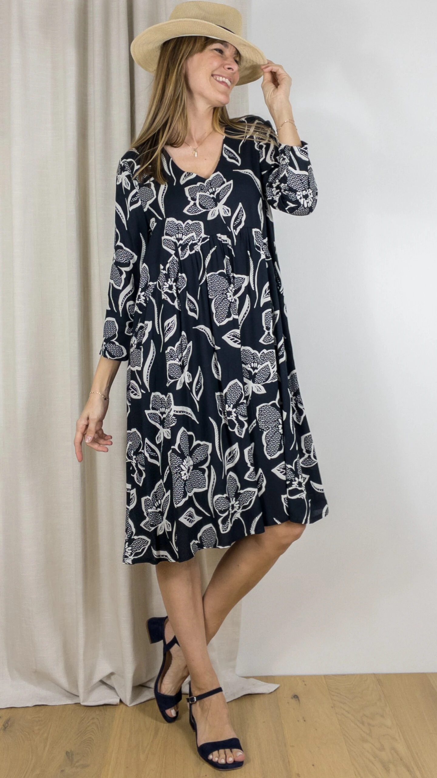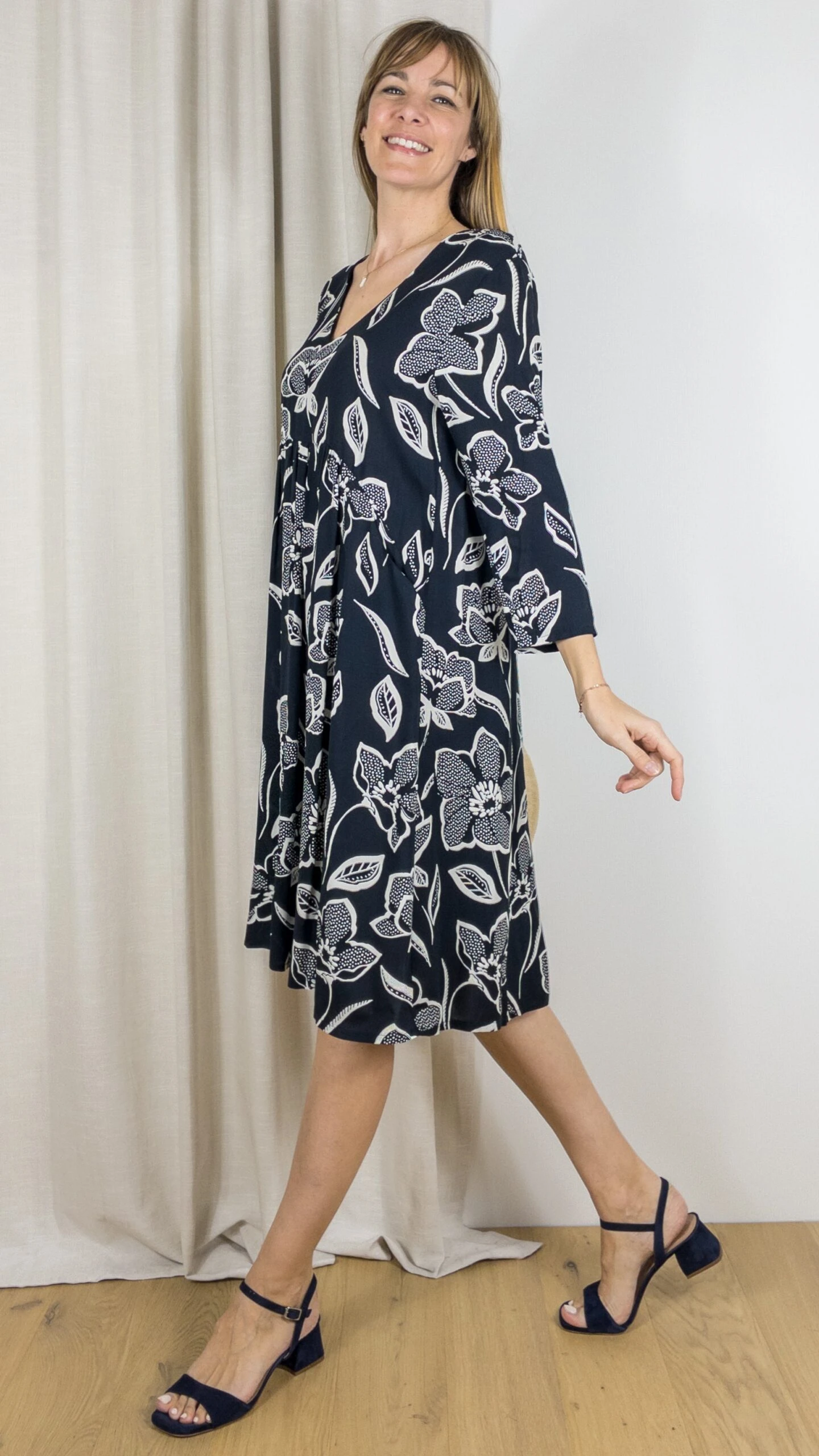 Robe évasée Laissez vous séduire par la robe CORIE Janis & John. Cette magnifique robe en lin évasée est le choix parfait pour toutes les femmes qui souhaitent allier élégance et confort. Fabriquée en lin, elle est légère et très agréable à porter. Une robe respirante et confortable ! Description Encolure V Coupe évasée Pli creux au dos Manches 3/4 Longueur genoux Conseils Julie mesure 1,78m. Le produit est proposé en taille unique, idéal du 36 au 46. Composition et entretien 100% Lin Lavage 30° Essorage 600 Le lin La matière de l’été est souvent le lin. Ses fibres sont ultra absorbantes et vous donne une sensation de fraicheur lors des fortes chaleurs. Il est léger, doux et naturellement confortable sur votre peau. Le lin est sûrement une des matières les plus résistantes aux tâches. N’appréhendez pas de porter du lin par peur qu’il se froisse, il se froisse avec élégance et discrétion. Voir toute la sélection de ce fournisseur Janis & John – WINDOWNEXT Histoire de la marque ou on écrit le nom de la marque Janis & John est une marque parisienne de prêt à porter au style urbain. A la fois confortable et chic, cette marque vous propose des pièces de qualité à prix intéressants. 014906 ROBE JANIS & JOHN CORIE