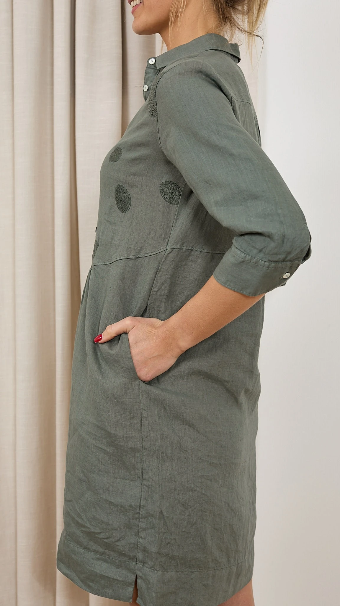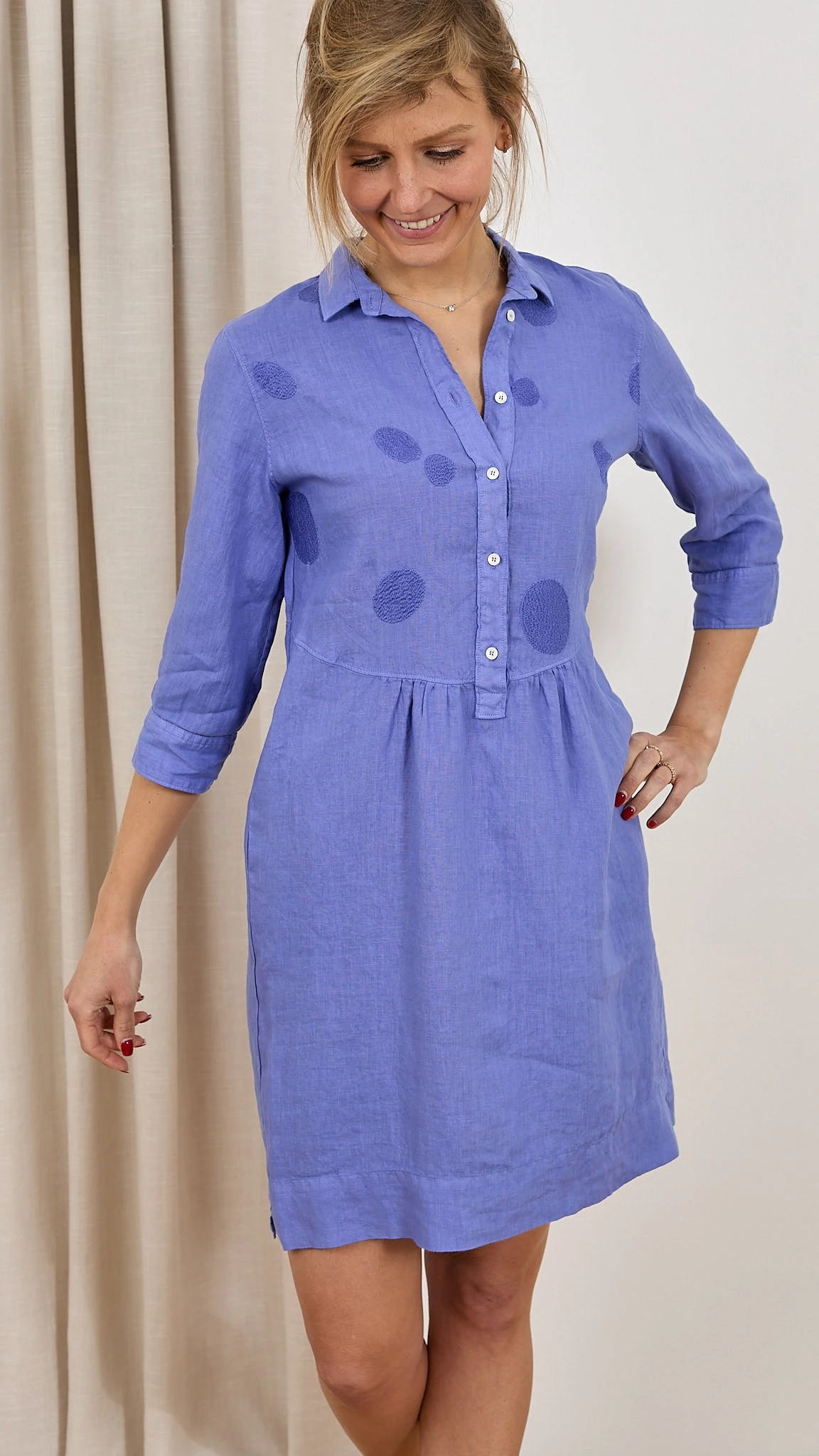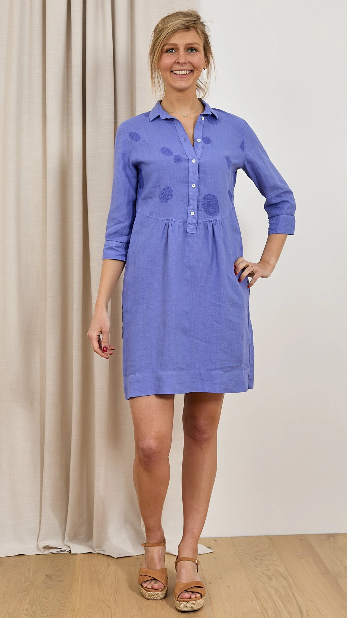 Robe brodée lin Découvrez la robe N1523VR Rosso 35. C’est un basique à avoir dans votre vestiaire d’été. Sa coupe fluide convient à toutes les femmes. Le col chemise et les fronces à la taille rendent votre robe sophistiquée et féminine. Confectionnée en lin, elle est légère et très agréable à porter les jours chauds. Détail original et ultra chic : Les pastilles brodées sur le haut de robe. Description Col chemise Patte de boutonnage Fluide Fronces à la taille Fentes latérales Pastilles brodées Conseils Bertille mesure 1,78m et porte la taille 38 avec les chaussures Unisa. Le produit taille normalement, nous vous recommandons de prendre votre taille habituelle. Composition et entretien 100% Lin Lavage 30° délicat Essorage 600 Le lin La matière de l’été est souvent le lin. Ses fibres sont ultra absorbantes et vous donne une sensation de fraicheur lors des fortes chaleurs. Il est léger, doux et naturellement confortable sur votre peau. Le lin est sûrement une des matières les plus résistantes aux tâches. N’appréhendez pas de porter du lin par peur qu’il se froisse, il se froisse avec élégance et discrétion. Voir toute la sélection de ce fournisseur https://windownext.com/collections/rosso-35 Histoire de la marque Le monde Rosso 35 est la recherche d’un équilibre entre deux pôles: classique (naturel) et contemporain. La femme qui choisit Rosso 35 aime la discrétion mais sait qu’elle ne passera pas inaperçue. Son style est raffiné et sophistiqué mais simple. Les qualités des coupes et tissus de ce fournisseur italien sont toujours au rendez-vous. 014154 ROBE ROSSO 35 N1523VR