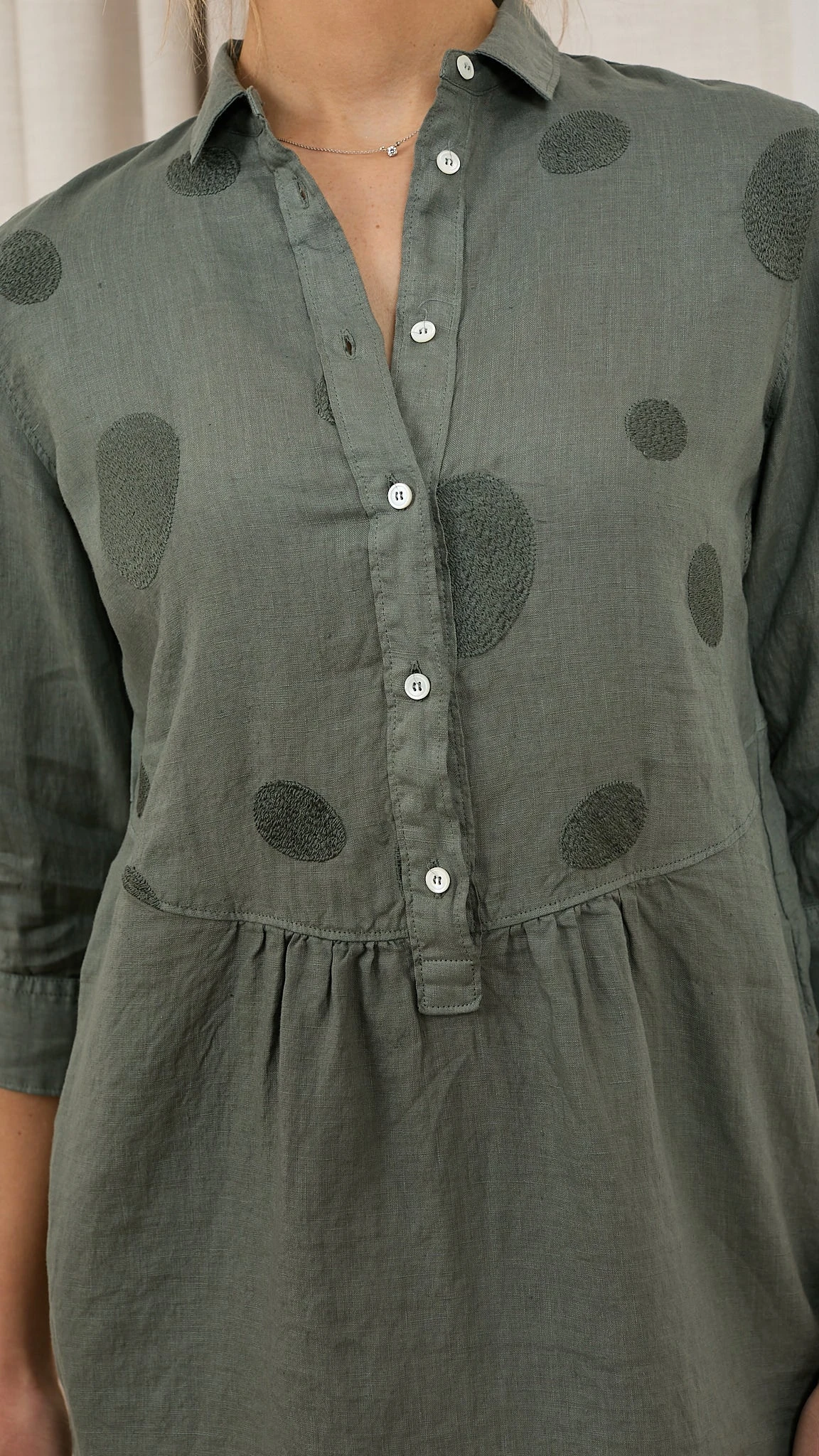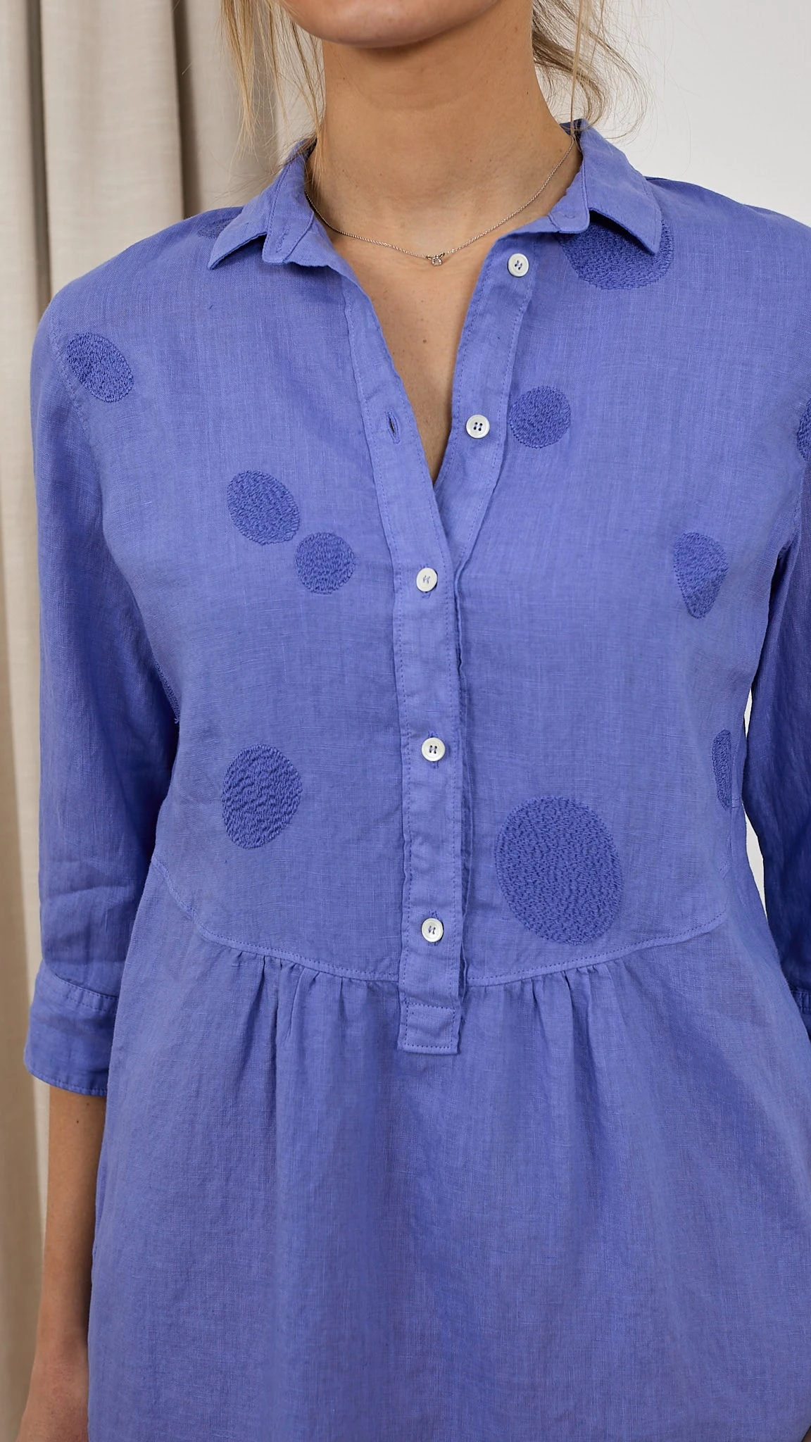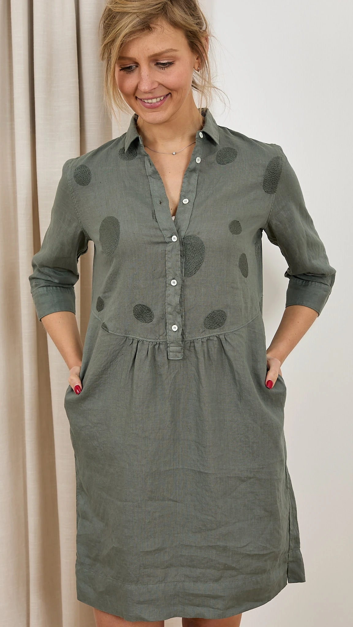 Robe brodée lin Découvrez la robe N1523VR Rosso 35. C’est un basique à avoir dans votre vestiaire d’été. Sa coupe fluide convient à toutes les femmes. Le col chemise et les fronces à la taille rendent votre robe sophistiquée et féminine. Confectionnée en lin, elle est légère et très agréable à porter les jours chauds. Détail original et ultra chic : Les pastilles brodées sur le haut de robe. Description Col chemise Patte de boutonnage Fluide Fronces à la taille Fentes latérales Pastilles brodées Conseils Bertille mesure 1,78m et porte la taille 38 avec les chaussures Unisa. Le produit taille normalement, nous vous recommandons de prendre votre taille habituelle. Composition et entretien 100% Lin Lavage 30° délicat Essorage 600 Le lin La matière de l’été est souvent le lin. Ses fibres sont ultra absorbantes et vous donne une sensation de fraicheur lors des fortes chaleurs. Il est léger, doux et naturellement confortable sur votre peau. Le lin est sûrement une des matières les plus résistantes aux tâches. N’appréhendez pas de porter du lin par peur qu’il se froisse, il se froisse avec élégance et discrétion. Voir toute la sélection de ce fournisseur https://windownext.com/collections/rosso-35 Histoire de la marque Le monde Rosso 35 est la recherche d’un équilibre entre deux pôles: classique (naturel) et contemporain. La femme qui choisit Rosso 35 aime la discrétion mais sait qu’elle ne passera pas inaperçue. Son style est raffiné et sophistiqué mais simple. Les qualités des coupes et tissus de ce fournisseur italien sont toujours au rendez-vous. 014154 ROBE ROSSO 35 N1523VR