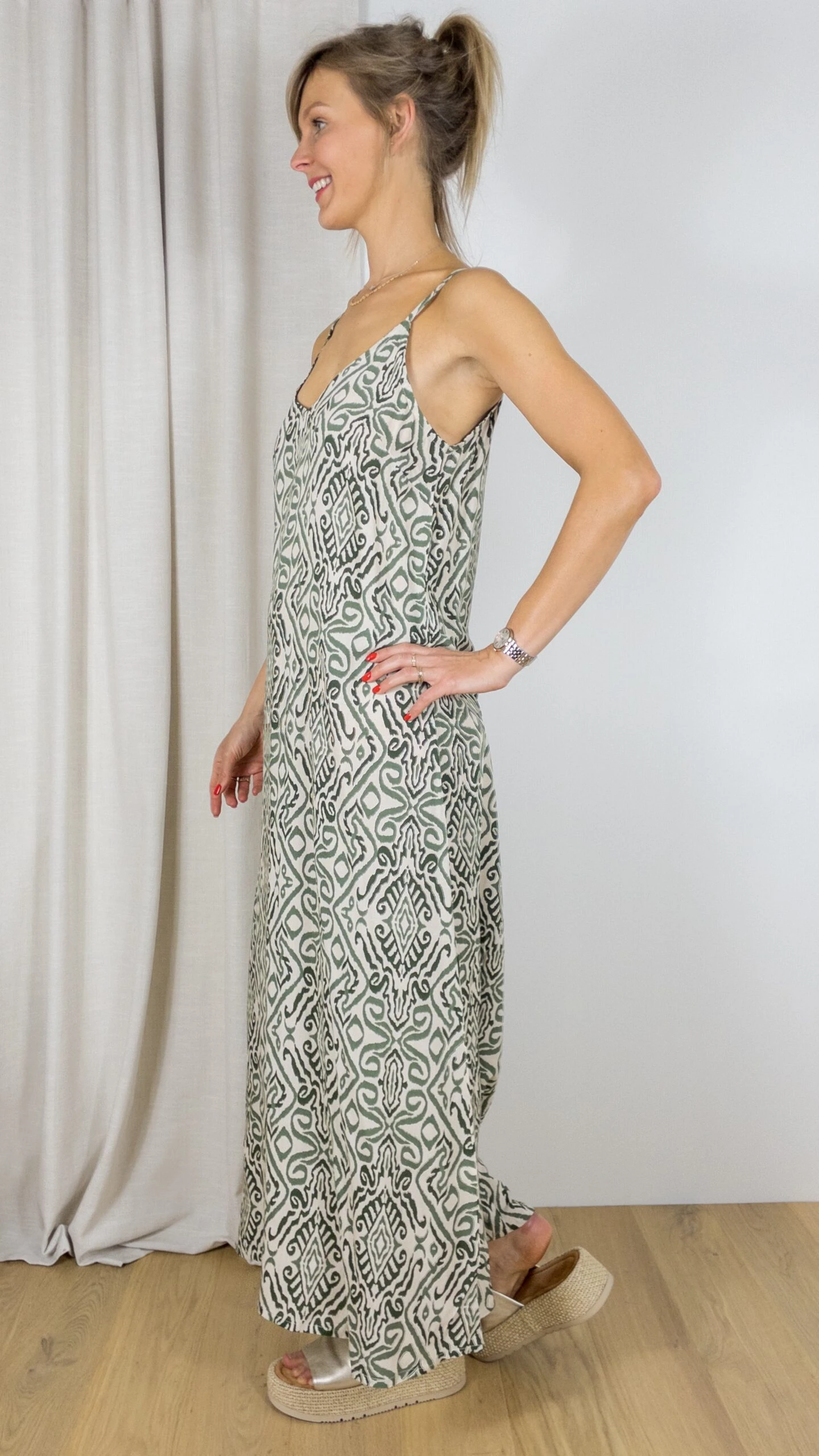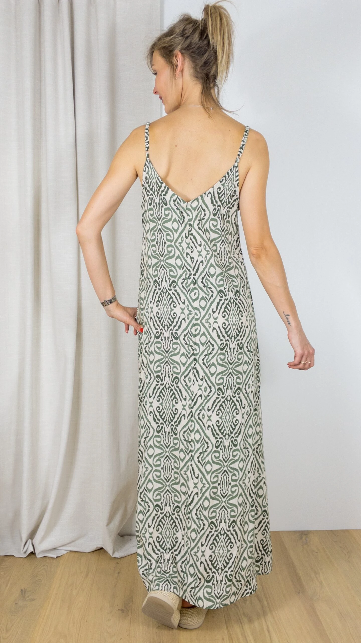 Robe à bretelles Les beaux jours arrivent, adoptez la robe 64482 Vous. A bretelles, elle est idéale lors des fortes chaleurs ou journées sur la plage. Son imprimé est frais et féminin. Sa coupe droite apporte un certain confort. Confectionnée en viscose, elle est légère et fluide. Description Bretelles réglables Droite Fluide Longue Conseils Bertille mesure 1.78m et porte la robe avec les mules CRISBEL Unisa. Le produit est proposé en taille unique, idéal du 36 au 44. Composition et entretien 100% Viscose Lavage 30° Essorage 600 Ajouter texte correspondant à la matière La viscose La viscose est une matière conçue à partir de cellulose naturelle. Un filage humide permet sa production. Une viscose peut être mat ou brillante en fonction de la volonté et des procédés du créateur. Son apparence peut être trompeuse, et vous donner l’impression de porter de la laine, de la soie ou du coton. La viscose est une matière légère, douce et cache l’odeur de transpiration. La viscose se lave facilement à 30 degrés avec un faible essorage à 600 tours et un léger repassage. Voir toute la sélection de ce fournisseur https://windownext.com/collections/vous La marque La marque Vous est une petite collection de maille, de blouses de robes et d’accessoires créée en partenariat avec nos fournisseurs pour répondre à la demande de nos clientes. Les coloris sont doux, les coupes sont faciles et le prix juste. 014826 ROBE VOUS 64482